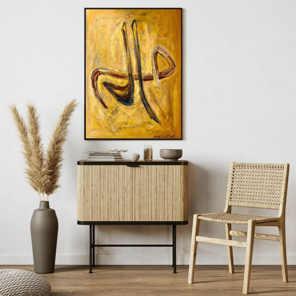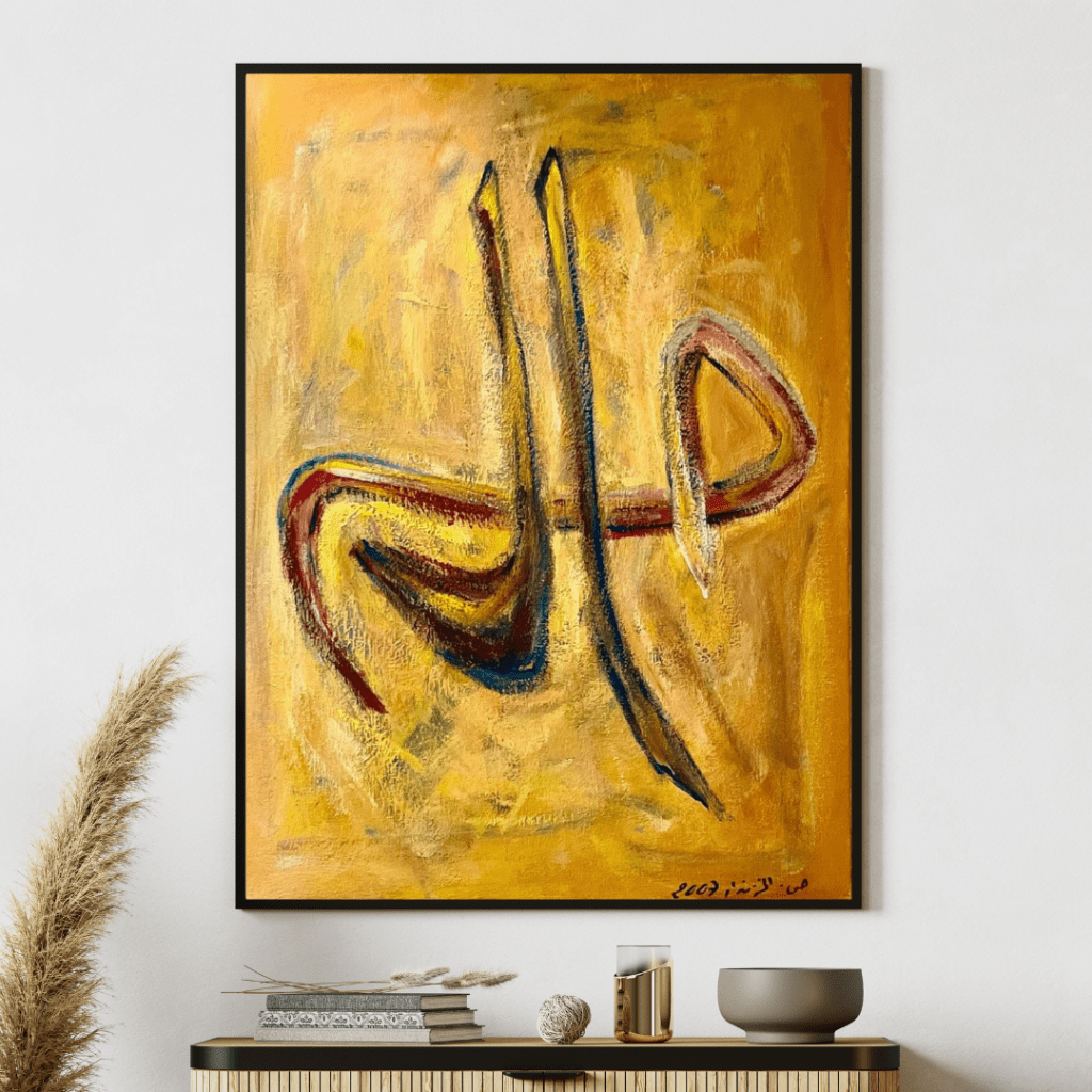 “Alif Lam Mim” is a sequence of letters that appears at the beginning of several chapters in the Qur’an, and its exact meaning remains a topic of scholarly debate. Considered one of the mysterious disjointed letters, its full significance is known only to Allah. The letters are artistically rendered in Arabic calligraphy, emphasizing an abstract flow that enhances their mystical and spiritual essence.