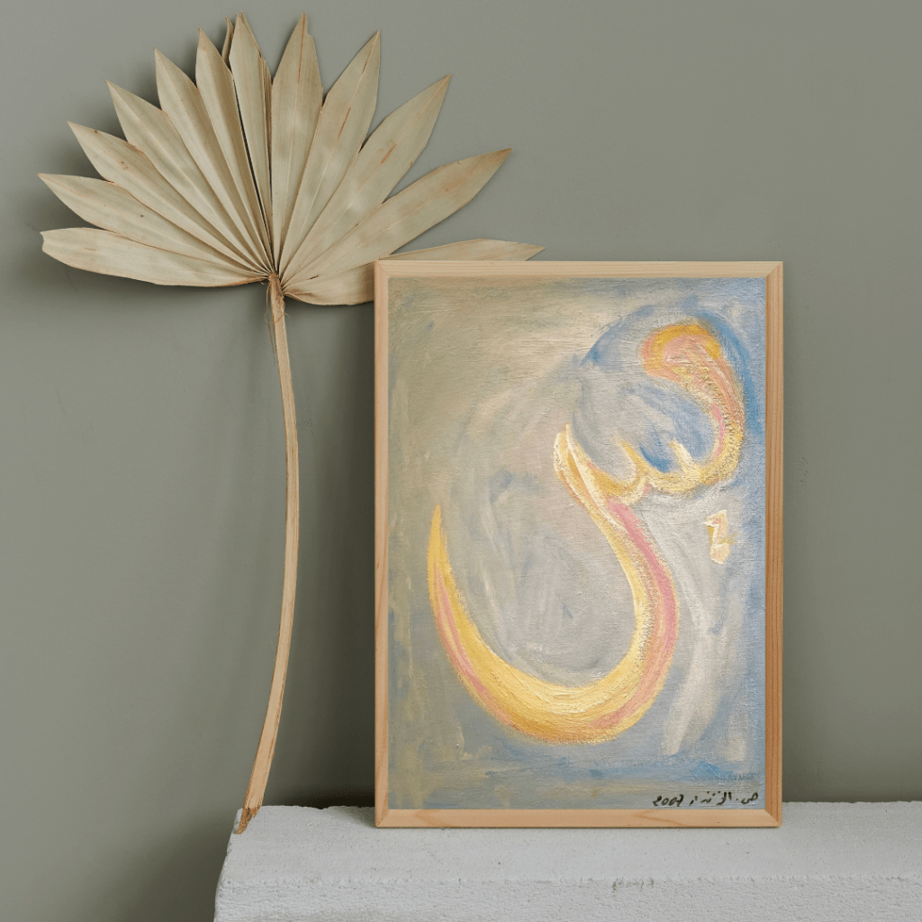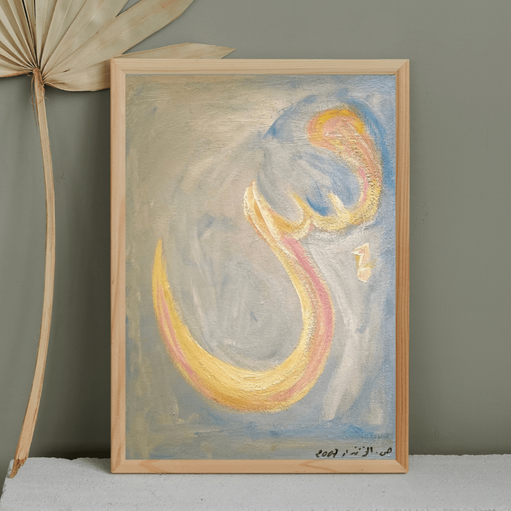 “Yasin” is the title of the 36th chapter of the Qur’an, and its exact meaning remains a topic of scholarly debate. Considered one of the mysterious Muqatta’at, or disjointed letters, its full significance is known only to Allah. The phrase is artistically rendered in Arabic calligraphy, emphasizing an abstract flow that enhances its mystical and spiritual essence.